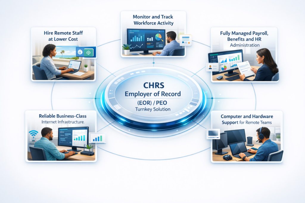 With our CHRS Employer of Record PEO Solution we handle everything to ensure your company and Remote Staff success!